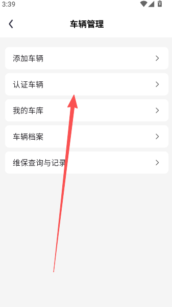 3、在车辆管理功能选项界面,点击认证车辆。
