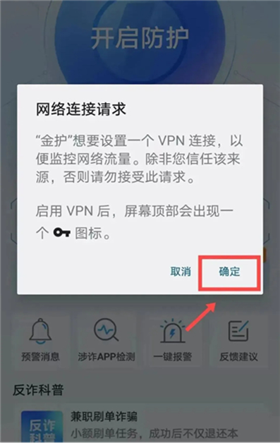 金护APP是一款针对网络诈骗提供实时预警的应用,帮助守护人民群众的钱袋子。