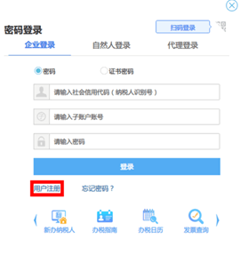 第二步:在弹出的登录界面,点击下方[用户注册]。