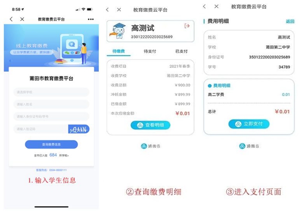 “莆田惠民宝APP”的“教育缴费”服务已接通全市686余所学校,从幼儿园到中小学,都可以通过“莆田惠民宝APP”在线交费!