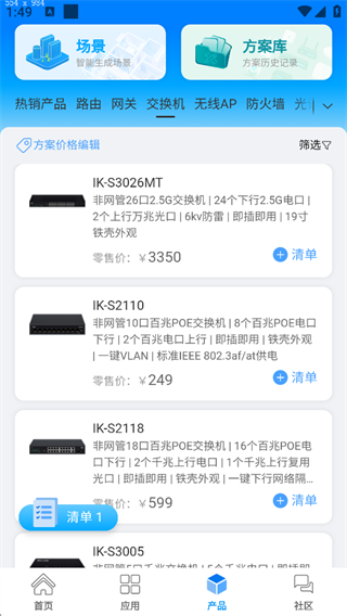 方案设计功能,输入用网场景,快速生成组网方案