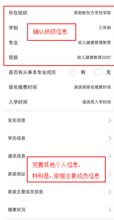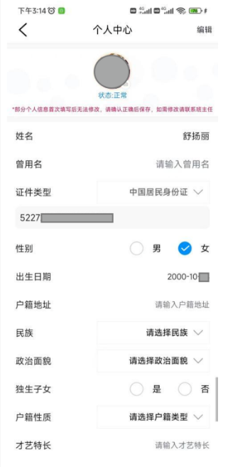 三、登录后,在个人页面确认个人信息并完善个人信息。