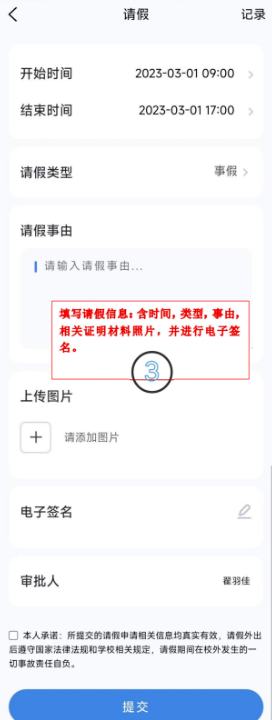 1.学生提交请假信息