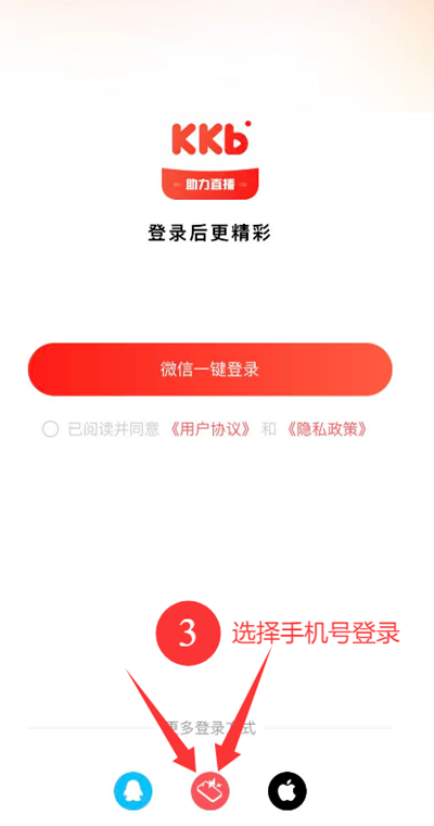 1、下载完看客帮官方APP打开后,点击右下角“我的”---顶部的“点击登录”进入到登录页面,现在底部中间的红色手机图标,使用手机号验证码登录APP。