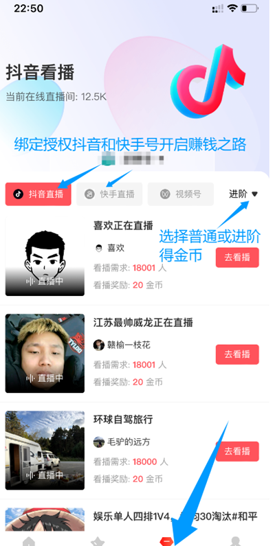每日观看10个直播间,每个只需停留3-5秒,点返回app即可,相当于一进一出即可超简单,一共可获取50金币(约5元),和适合新手快速入门。