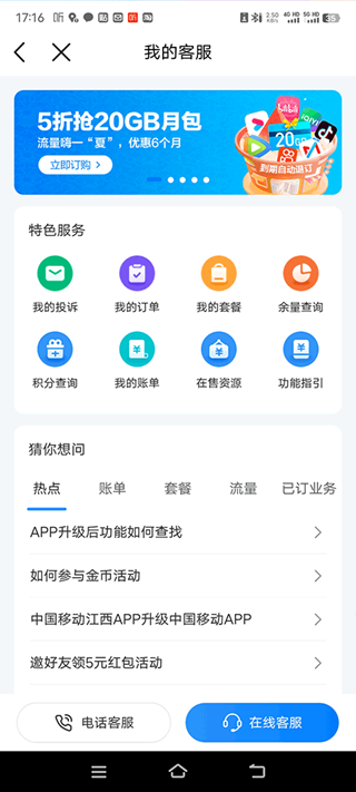 5G专区服务,提供5G覆盖查询、资费办理、手机选购等一站式体验