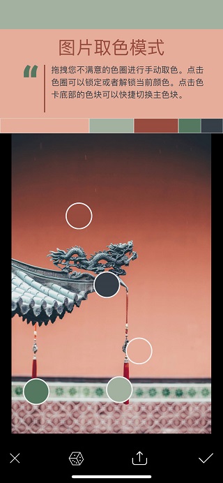 若是看到一份有潜力的色彩构成,点击照片即可进入熟悉的取色模式,进一步探索自己心仪的配色。