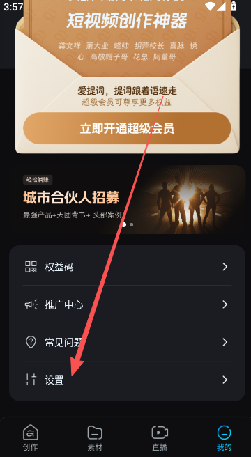 1、点击个人主页信息部分,找到下方的设置功能选项。
