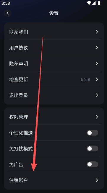 2、点击底部的注销账户选项。
