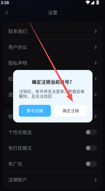 3、查看提示部分,并确认注销。