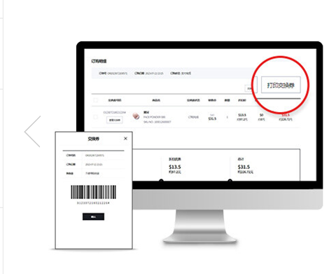 完成支付后请在‘我的订单明细’打印交换券的页面进行打印,在取货处提示交换券可取货。