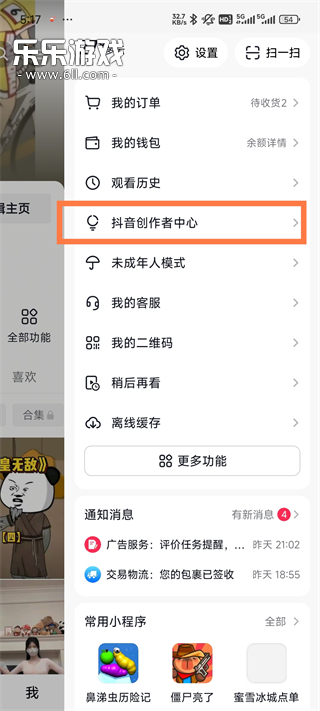 2、点击右上角“三条横线”,选择抖音创作者中心。