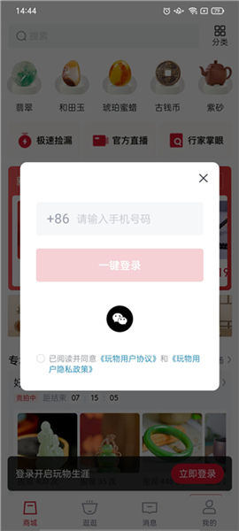 1、下载安装好玩物得志App,打开后通过微信或手机号登录。