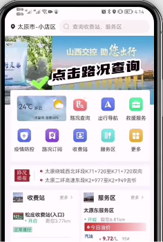 第一步:进入晋e行APP首页→点击“路况查询”;