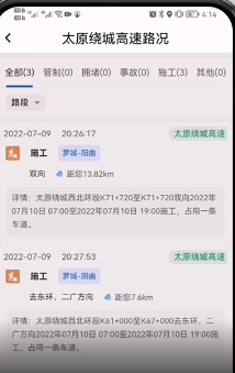 2.路况查询,管制、拥堵缓、事故及施工等高速路况查询;收费站和服务区开关状态,管制、拥堵等路况查询;车型及时段长期限制信息查询。