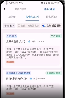 第四步:查询收费站信息→可通过区域、车型时段限制筛选信息,或在搜索框输入“xx收费站“,了解当前收费站详情。