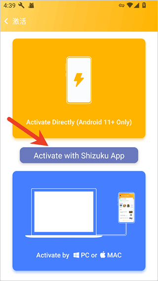 3、接着在弹窗中选择“使用Shizuku激活”选项。
