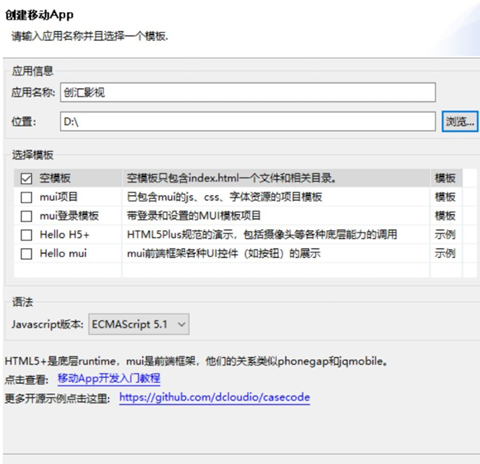 二、点击左上角“文件”–“新建”–“移动APP”新建一个项目