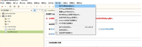 八、配置差不多完成了…点击上方工具栏“发行” – “发行为原生安装包..”