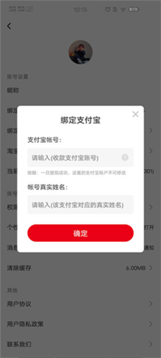 3、在设置列表中找到并选择“绑定支付宝账号”选项。