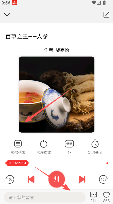 4、收听过程中还可以根据自己的喜好来定各种播放效果,比如顺序播放或是参与评论等。