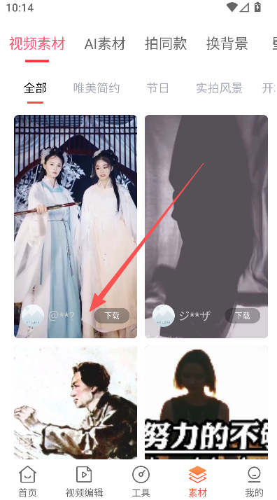 1、点击下方栏目切换到素材板块,找到自己感兴趣的下载。