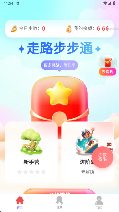 1、在线下载走路步步通软件软件手机中,即可一键开启步数权限;