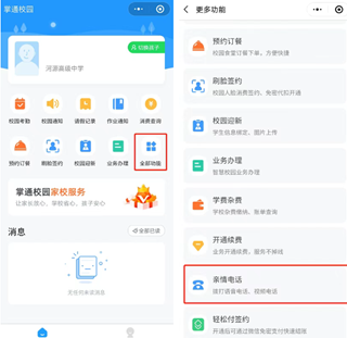 操作路径:登录掌通校园 -> 我是家长 -> 全部功能 -> 亲情电话
