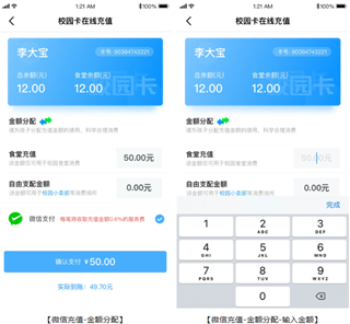 通过掌通校园APP或小程序充值