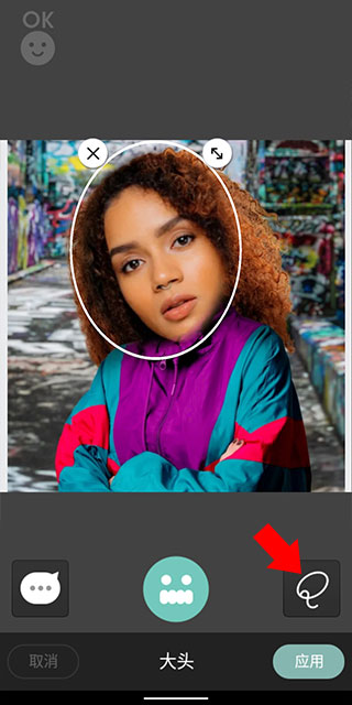 4、之后相机会自动捕捉相片中的面部部分,如果未成功捕捉的话,那么点击右下角的磁力套索进行套取即可
