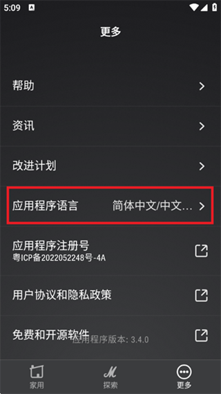2、选择【更多】,选择【应用程序语言】