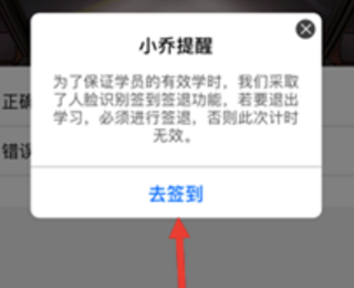 选择以上学习内容,弹出提示点击“去签到”。