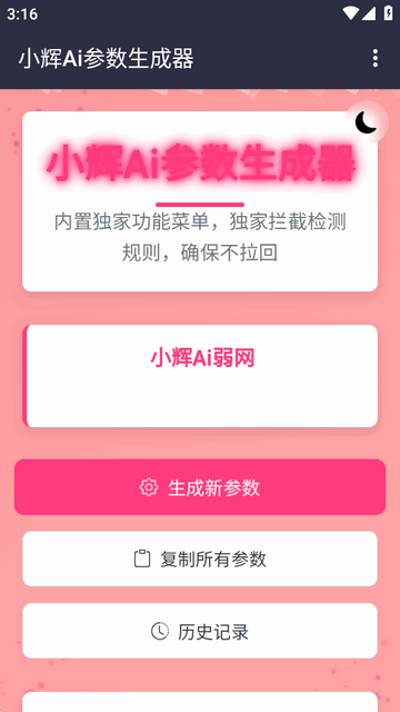 小辉Ai参数是一款基于前沿人工智能技术与大数据分析深度融合的智能化参数优化工具,该工具通过实时采集用户设备状态及业务场景需求,结合深度学习算法构建动态参数模型,能够精准生成适配当前环境的个性化参数配置方案,用户仅需一键即可完成参数生成与部署,并可随时回溯历史配置记录,实现高效复用与灵活切换!
