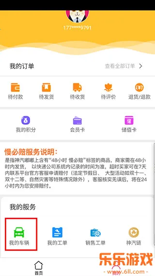 2、点击我的,找到我的车辆服务,如下图所示: