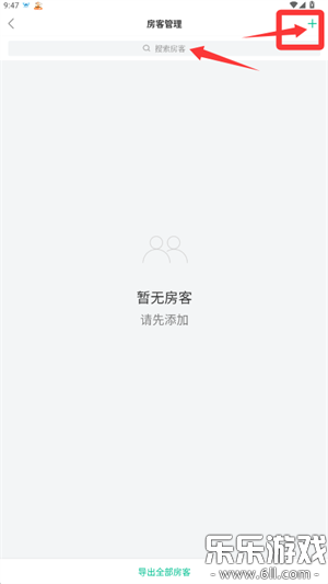 3、登录后进入房客管理页,点击右上角加号图标开始新增房客。