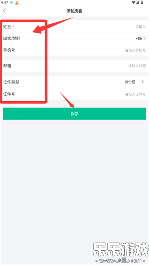 4、在新增页面填写房客姓名与联系方式等资料,点击保存完成添加。