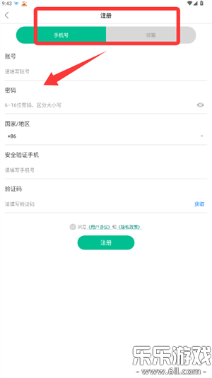 1、进入注册页面选择手机号注册,填写账号密码及验证信息完成注册。