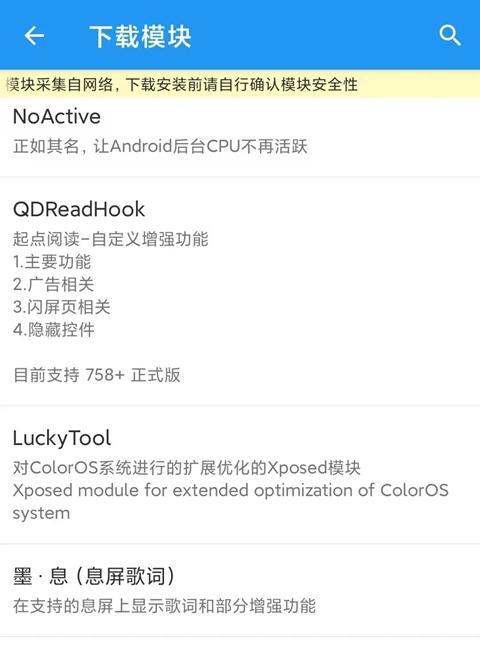 1、只要是通过团团分身创建的分身,都支持免Root使用XPosed模块,这是本软件最大的亮点!打开「下载模块」页面,可以看到非常多的XPosed模块,右上角可以进行搜索。