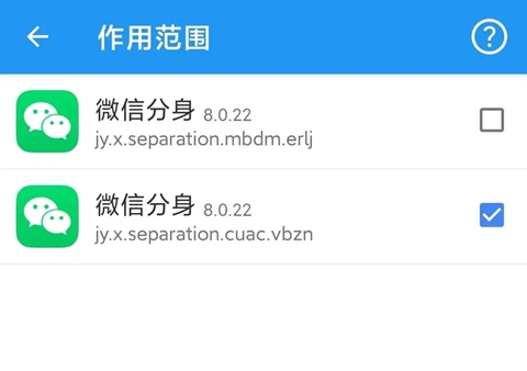 3、需要注意的是,启用的模块默认对所有分身有效,也可以单独设置每个模块的「作用范围」!