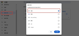2.点击【搜索引擎】,随便设置一个其他搜索引擎,例如:百度,搜狗等搜索引擎。