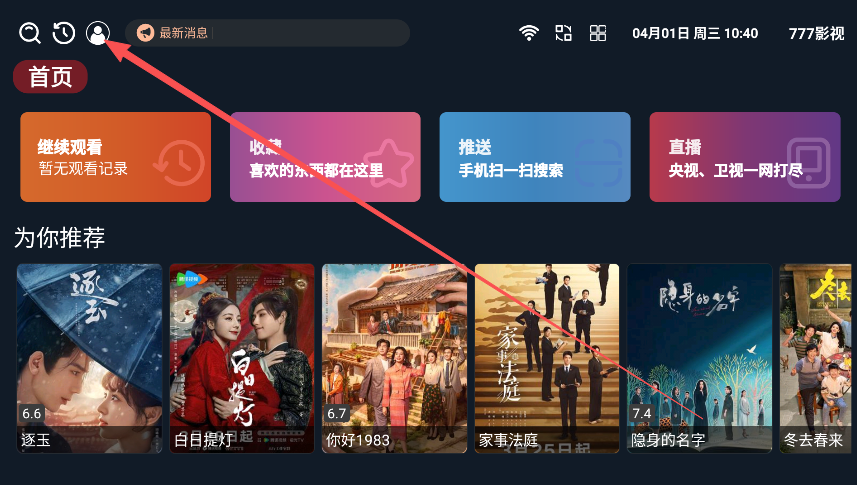 安装完成后,在电视应用列表中找到777影视图标,点击打开使用。