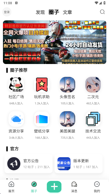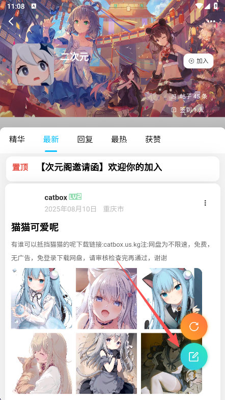2、进入后浏览圈子内容,点击右下角发布功能即可