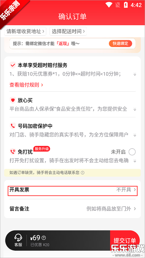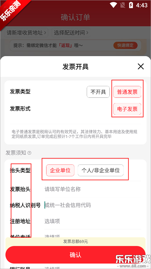 1、打开软件选好商品在下单页面,往下滑动,会找到一个开具发票,点击进入