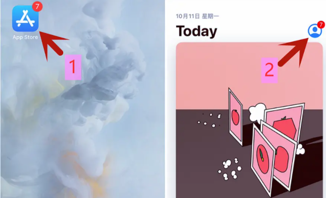 1.先进入我们手机里的AppStore,点击首页右上角的头像位置。