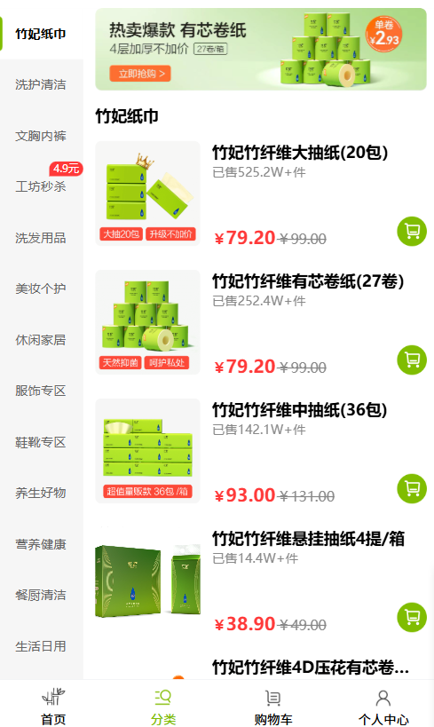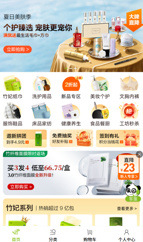1. 产品种类丰富,有13大品类,能满足家庭一站式消费需求,像竹妃纸巾、酵丽洗护等啥都有。