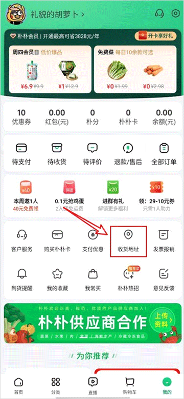 5、朴朴买菜App内还有各种福利【0.1元抢鸡蛋、拉人免费返45等等】