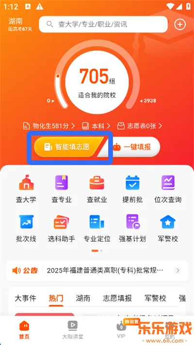 3、成绩设置完成后,返回首页,点击【智能填志愿】;