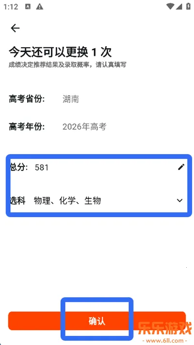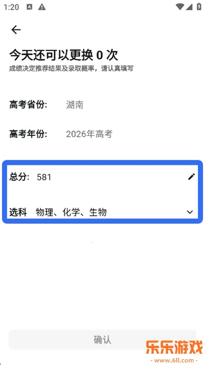 2、输入总分以及选科情况,点击【确定】;