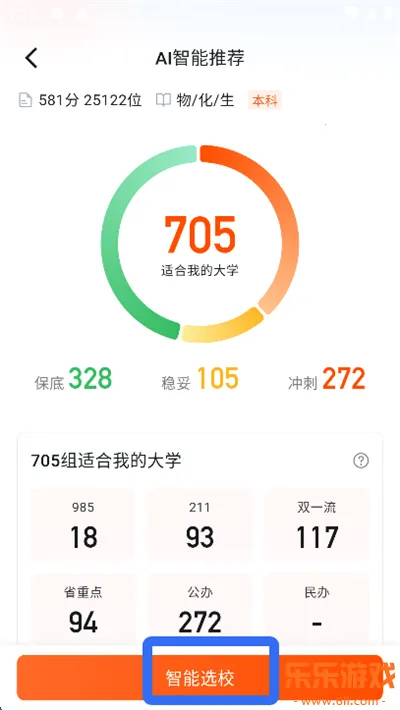 4、进入AI智能推荐页,点击【智能选校】;