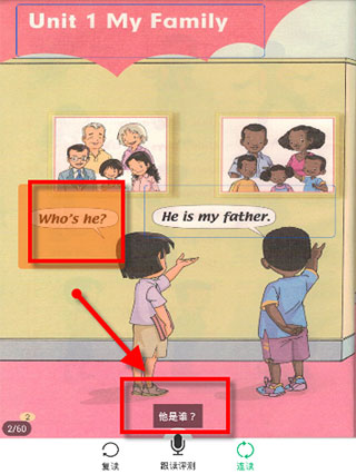 7、点击课本中的对话,还可以看到下方会有与之对应的翻译。